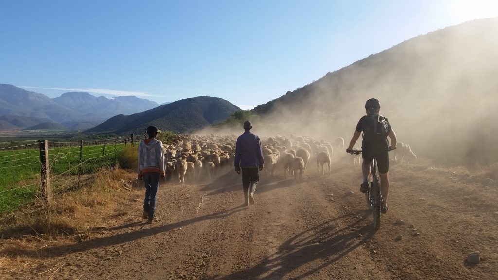 And so onwards we ventured through undulating golden fields and feather palaces, slowly meandering our way towards the Swartberg Mountains and the gateway to the Groot Karoo. By the time we left the quirky town of De Rust, my negotiating skills had improved somewhat to the point where I was able to convince Julia that ‘sharing’ the driving of the backup vehicle meant that she had to take a turn driving at some point too. And so I finally found myself on two wheels, stretching my legs in the early mist-filled Karoo morning and enjoying the pastoral serenity of the gently winding Oudemuragie road. An idyllic start to what was a very long but rewarding day.