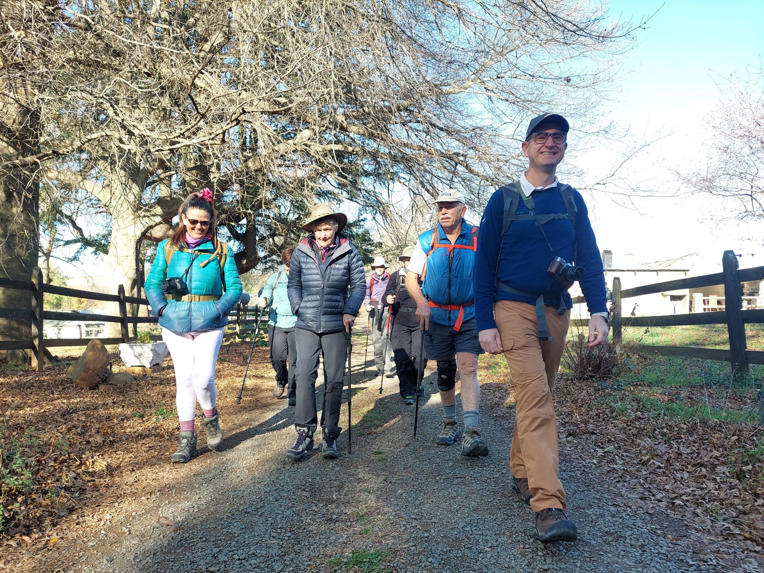 The following morning our group walks through the Flitwick settlement, then via a forest onto higher ground. Now we have panoramic views of the rolling, almost treeless uplands stretching to the giant ring of the Drakensberg in the south and to the Kwazulu-Natal Midlands in the north. We pause to view the snow on the Drakensberg, about 50km away.