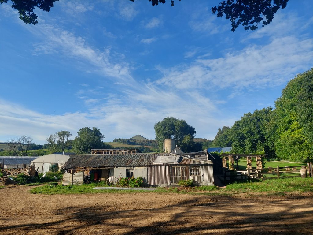 The huge structure is under corrugated iron with a long verandah looking onto the hills.