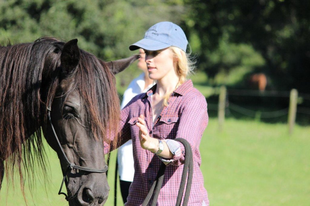 Christiano and Simone our German visitors stood gingerly aside, not a bicycle, but a handsome black Friesian horse. The Midlands is fast being discovered as a place offering cycle and hiking tourists not just trips focused purely on the bike and the end destination, but rather journeys filled with unique cultural and natural experiences. One of these forms the start to our trip, a ‘horseplay’ session masterfully facilitated by well-known horse guru/whisperer, Carlene Bronner. Unlike the simple react and response mechanisms of a bike, our guests will spend the next hour discovering the art of horse communication using subtle body gestures as a cue for gentle persuasion. Although the couple confessed that they were not familiar with handling horses, it was amazing how with newfound respect and understanding they quickly eased into the experience and had their horses eating out of their hands (admittedly the tuffs of green grass may have helped).