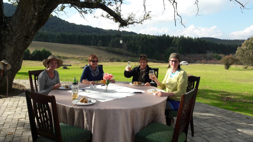 We wended our way through the gorgeous forest, replenishing our water bottles with natural spring water, emerging now and again into flower-studded grassland, before descending into the Lidgetton valley to stop for cold beers at Pleasant Places. On this informal weekend we enjoyed picnic-style the packed lunches we had brought with us, but future Spekboom Tours slackpacking trails will be fully catered.