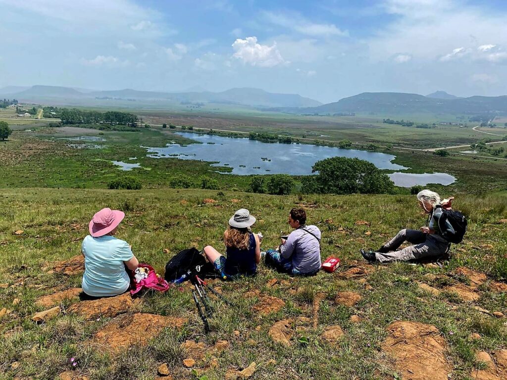On this occasion, Rupert took the lead under the banner of the Wakkerstroom Walks and Trails—a casual group of locals who meet bi-weekly for invigorating walks in and around the village. With a small donation to the association, Rupert agreed to guide us to a nearby waterfall. Though there was a longer 15 km route on offer, the unanimous vote of the group was “less is more,” opting instead for the more manageable 8 km trail. This left plenty of time for a leisurely lunch later in the day.
